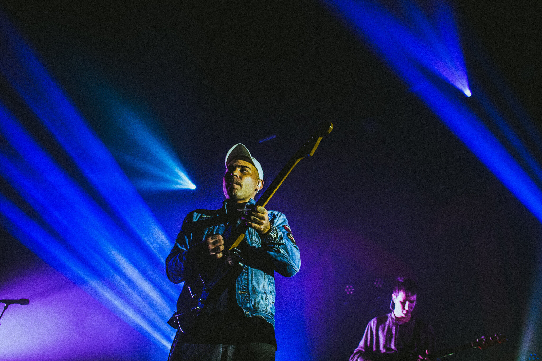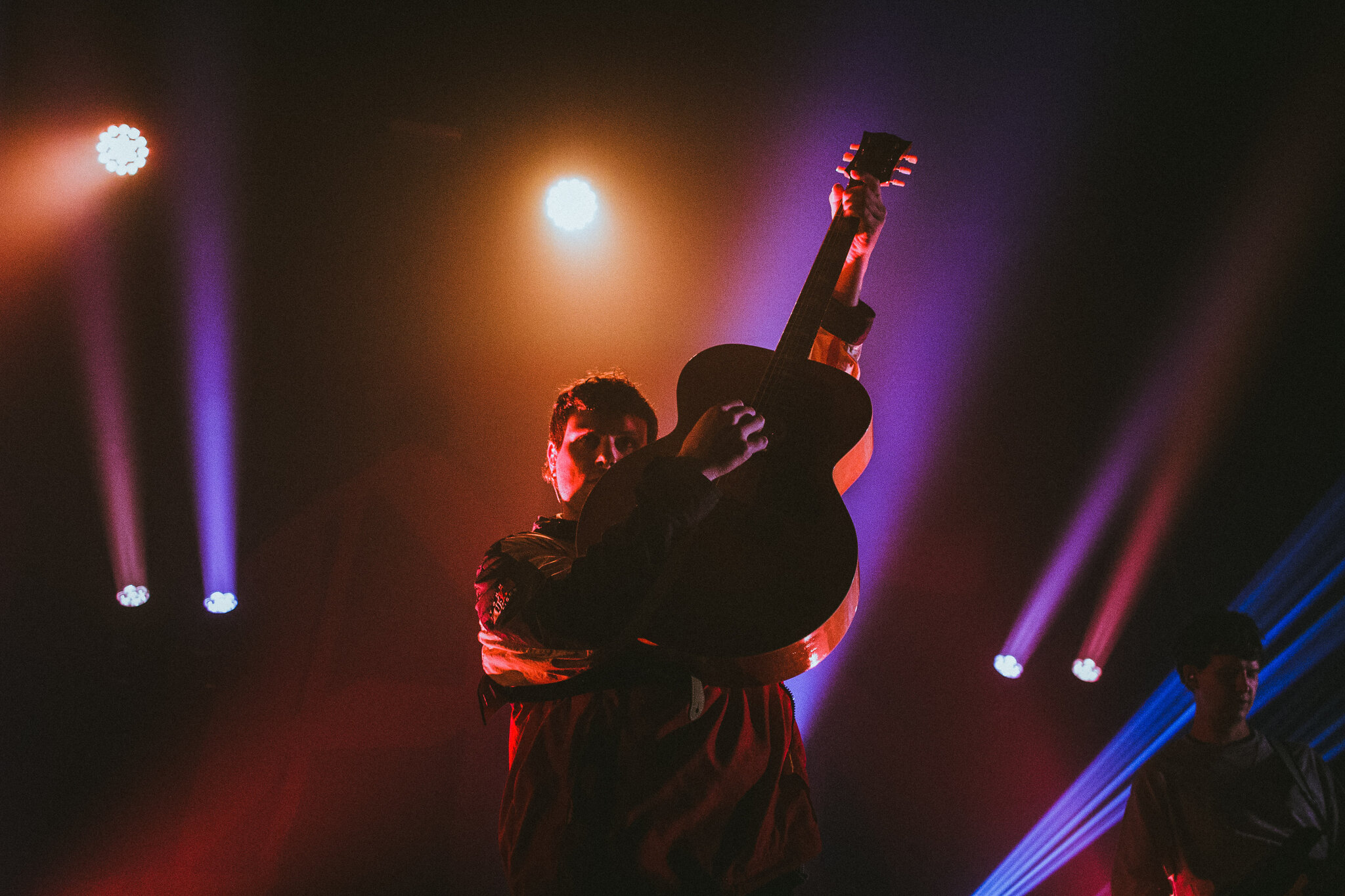 As DMA’s took to the stage, they wasted no time with small talk as they opened with ‘Play It Out’, a fan favourite from their debut album Hills End. Within seconds, multiple flares had been lit, as the eager fans took control of how they wanted the night to be: chaotic and energetic. The audience were clearly craving a hint of nostalgia associated with giant Mancunian artists such as The Stone Roses and Liam Gallagher.