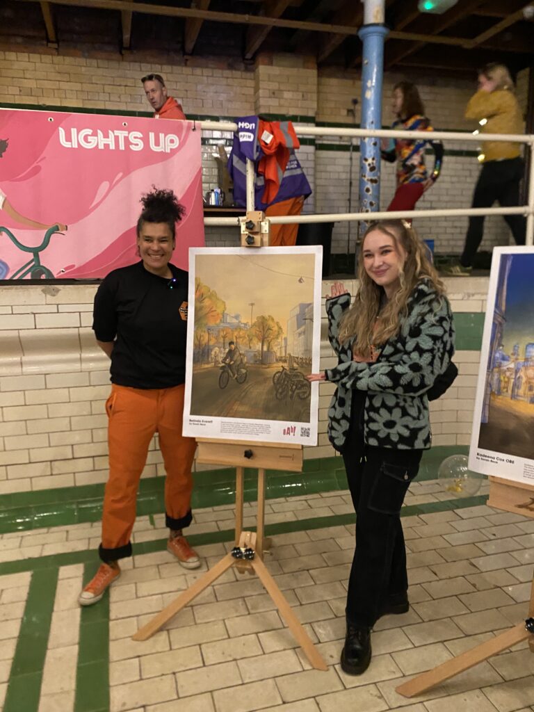 Natalie added: “We’ve received some excellent feedback so far, with guests keen to purchase prints and artwork from our student artists, and invitations to host further shows in the community. The interactive artwork has gone down really well too, encouraging people to share their experiences and opinions of cycling in the city — making the guests themselves part of the artwork.”