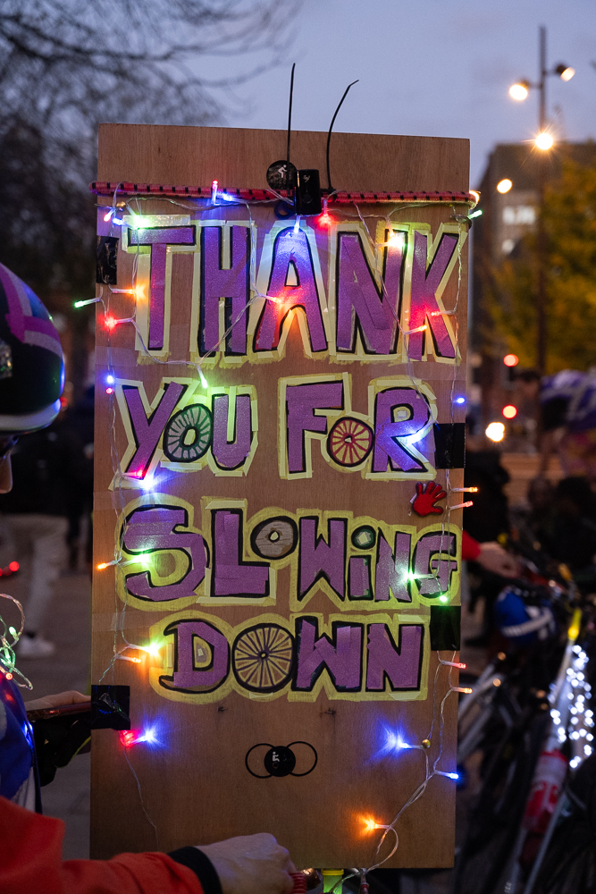 Addressing the crowd ahead of the ride, Councillor Tracey Rawlins said: “Let’s all be safe, be happy, let’s all be together and let this be the start. Let’s see more and more of our bikes at night, over the winter with our lights, and light up the city while cycling.”