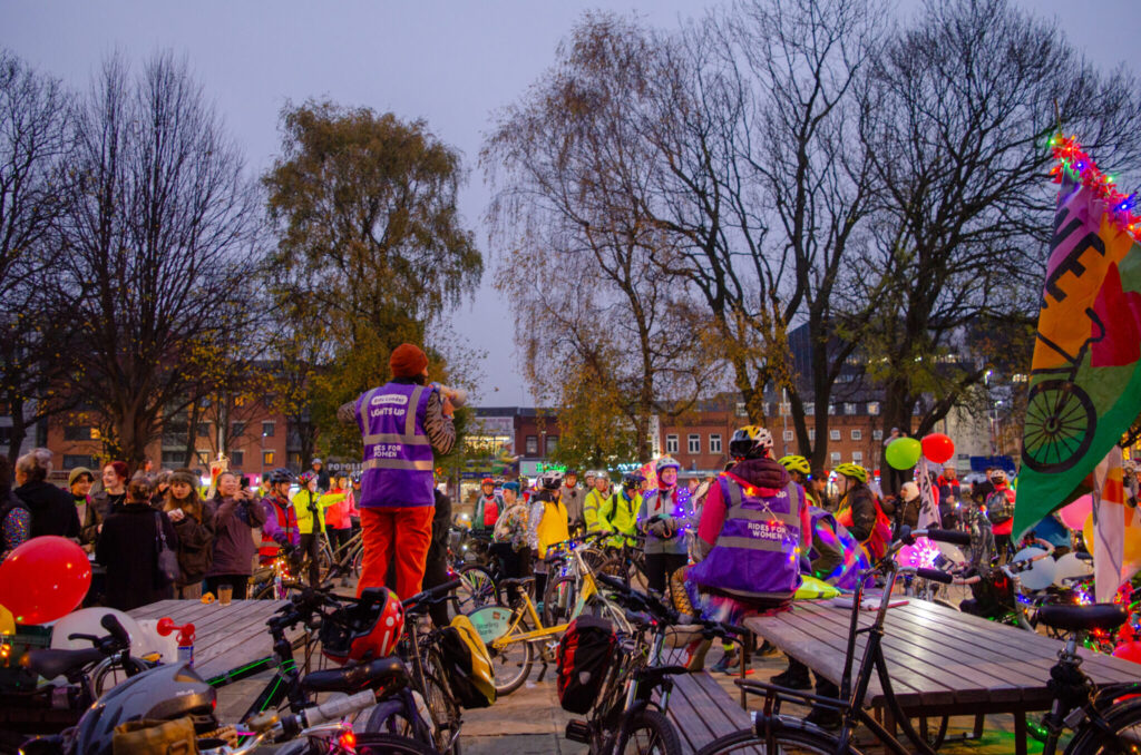 Over 180 women gathered on their bikes at All Saints Park, clad in vibrant outfits and fairy lights as they prepared to ride through the streets of Manchester as an illuminated, empowered collective.