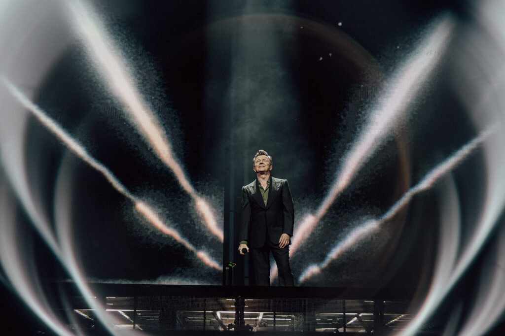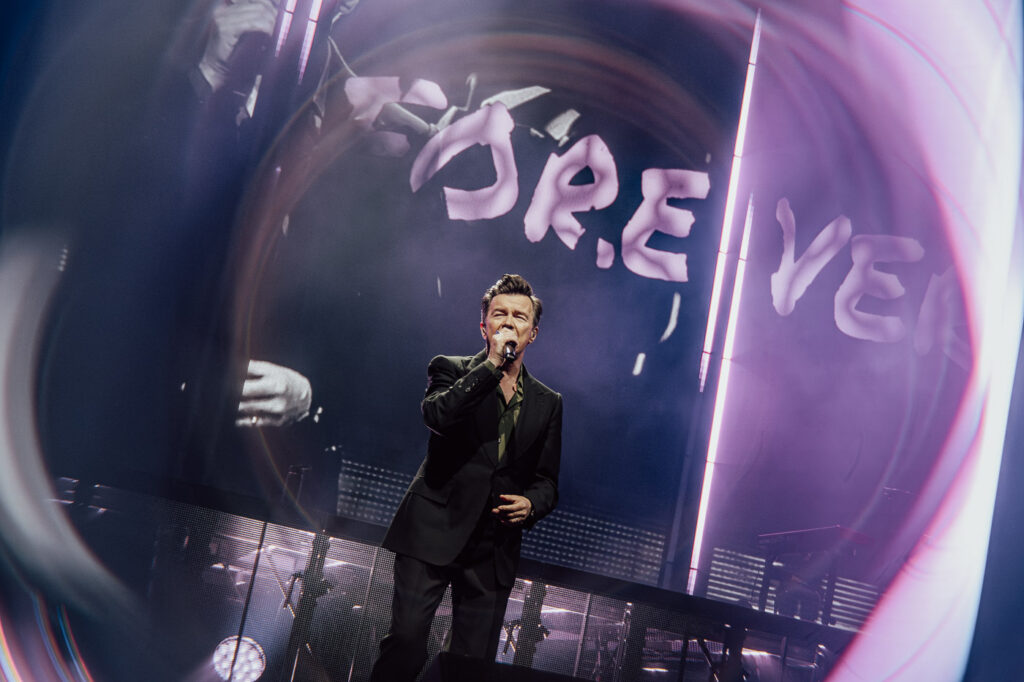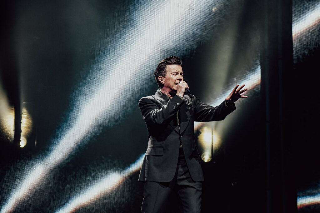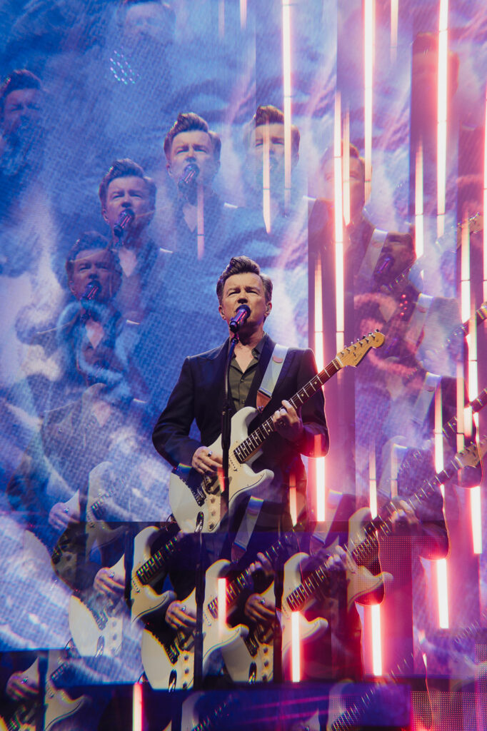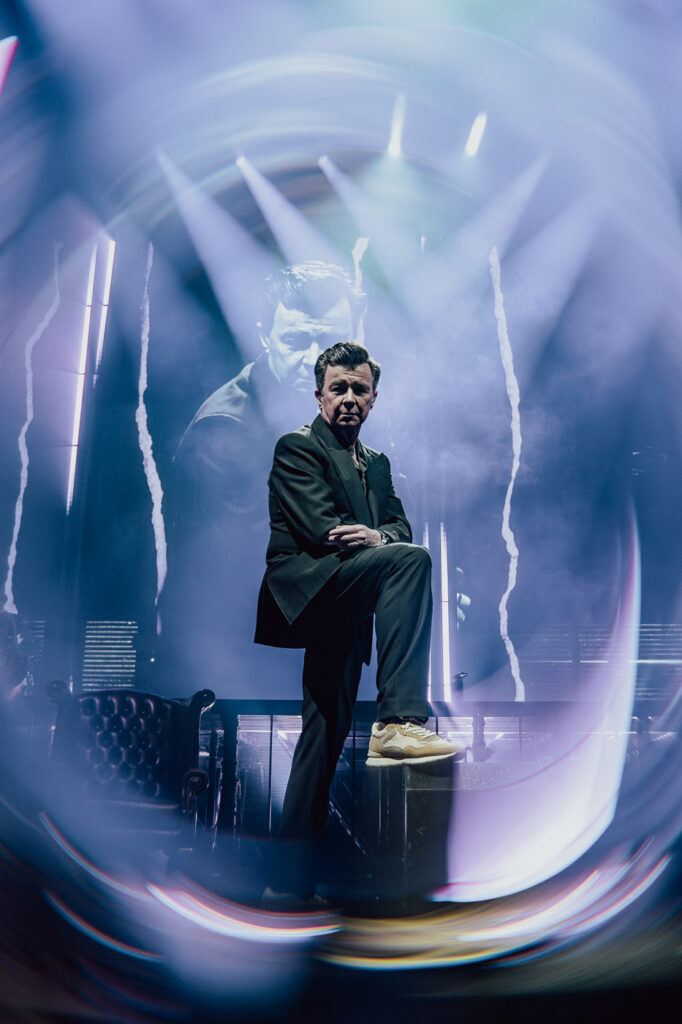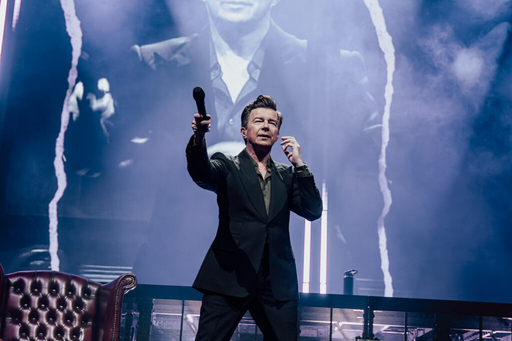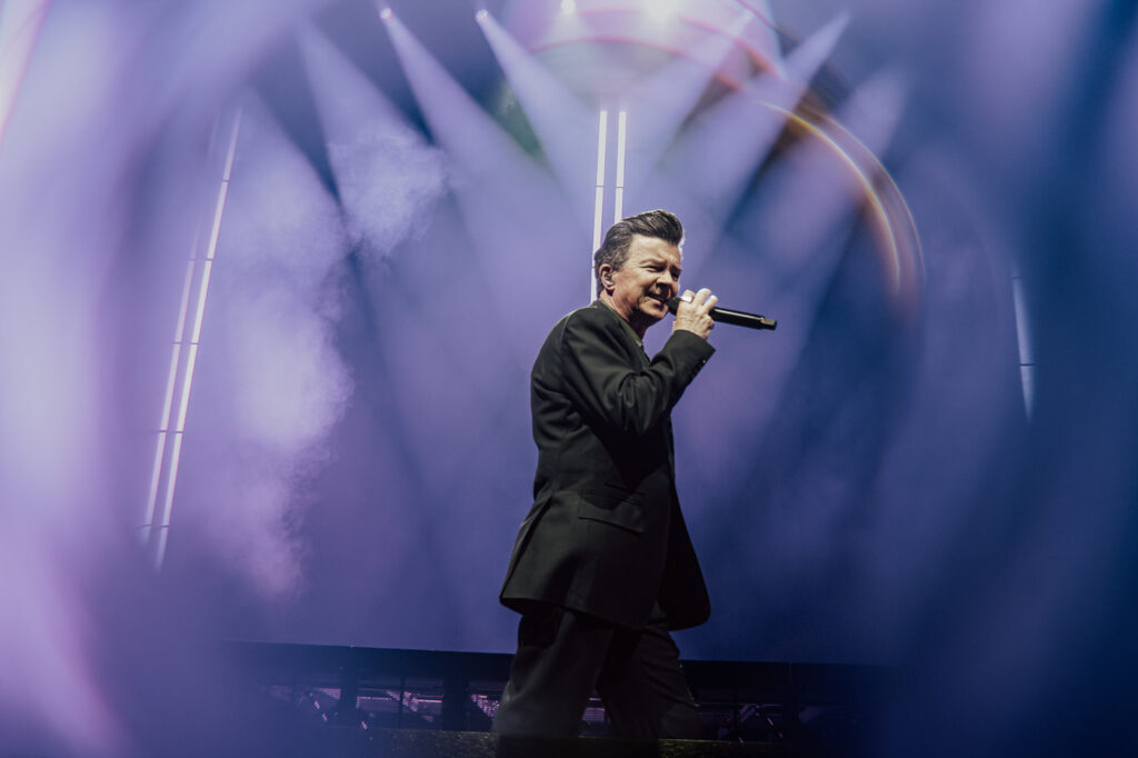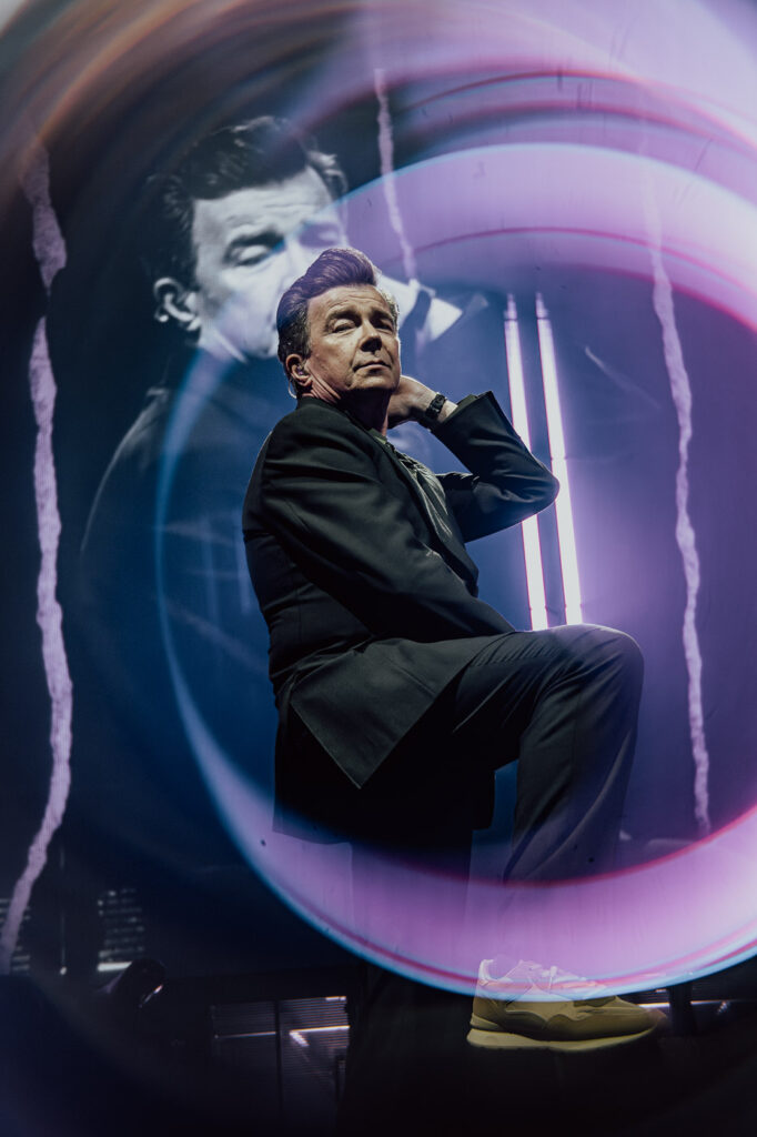Much like a high-energy support act staking their claim, Astley leans into the moment with intensity. He moves confidently and freely across the stage, shifting between poised control and bursts of energy, his expressions caught mid-lyric, mid-gesture.