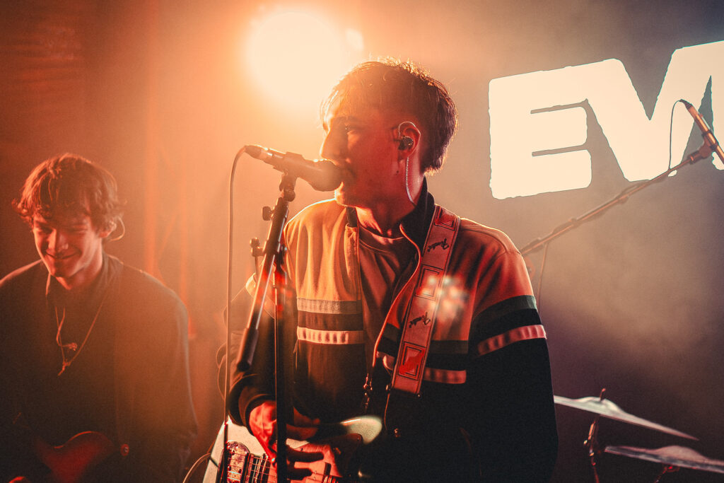 Manchester-based quartet Everyman kick off the show with jangle-pop melodies layered over familiar indie rock. Made up of Nathaniel Maddock on vocals/guitar, Henry Hill on lead guitar, bassist Adam Valleley, and Ethan James behind the drum kit, Everyman cite artists like The Smiths and The Stone Roses as inspirations.